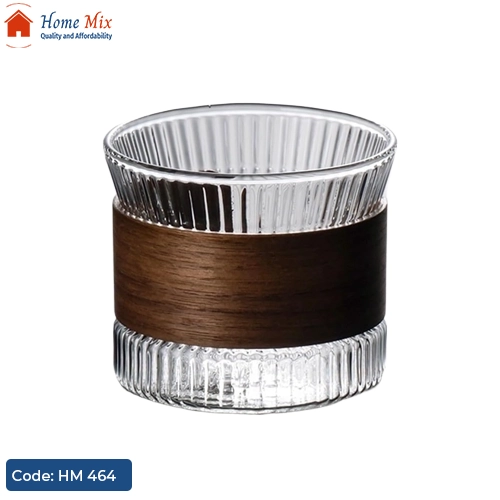 استكانة زجاج حراري منقرش بإطار خشب – سعة 150 مل
