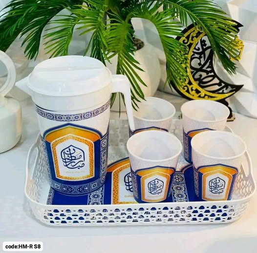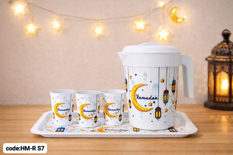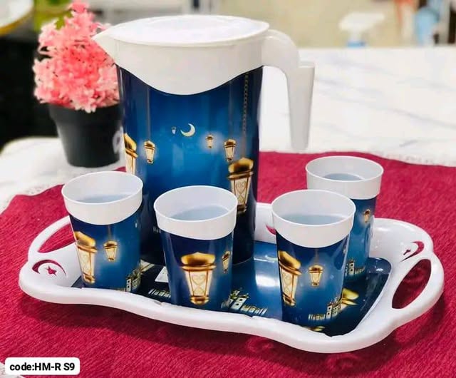 طقم دورق رمضان 6 قطع بلاستيك – دورق 2 لتر + أكواب 350 مل