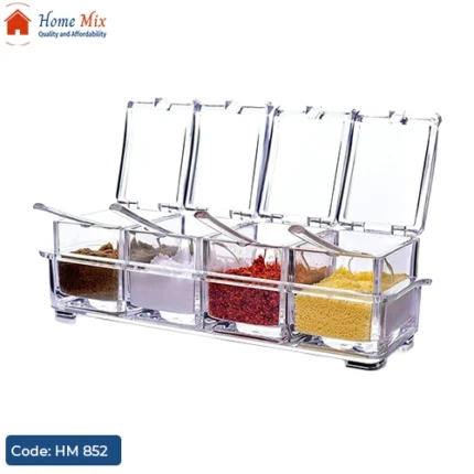 نظمي توابلك بكل سهولة مع طقم التوابل ECOCO العصري، مصنوع من أكريليك صحي شفاف مع معالق عملية وعلبة دابل فيس أنيقة للتقديم.