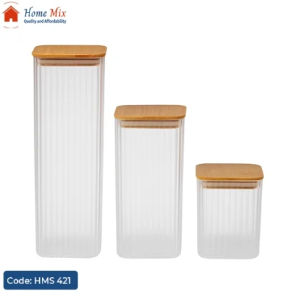 علبة تخزين أنيقة وعملية لحفظ البقوليات والحبوب، مصنوعة من الأكريلك الشفاف المضلع مع غطاء بلاستيك بتصميم خشبي أنيق، تعطي مطبخك لمسة عصرية.