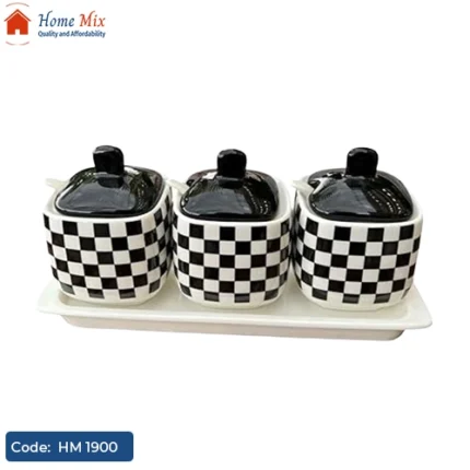 طقم بورسلين شيك يحفظلك السكر، الشاي، القهوة أو التوابل الأساسية بشكل مرتب وأنيق ✨.