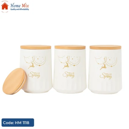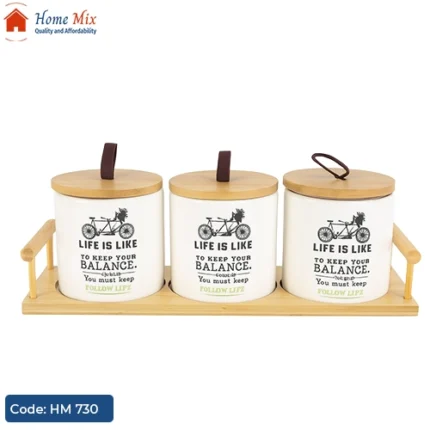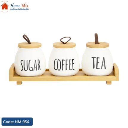 خلي كوفي كورنر بيتك أجمل مع طقم البرطمان البورسلين العملي والأنيق. 3 برطمان بسعة 500 مللي بغطاء خشب محكم وتراي بامبو أنيق مع معالق بورسلين.
