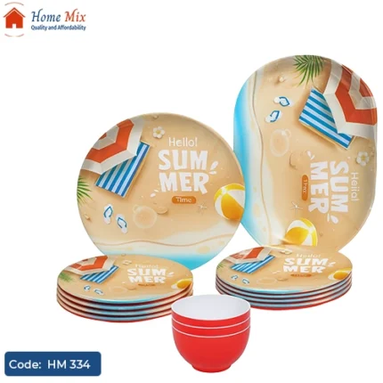 أجواء الصيف على سفرتك ☀️ طقم الساحل ميلامين بيور فاخر مكوّن من 18 قطعة متنوعة برسومات صيفية جذابة، ضد الكسر وآمن للاستخدام داخل الميكروويف وغسالة الأطباق.