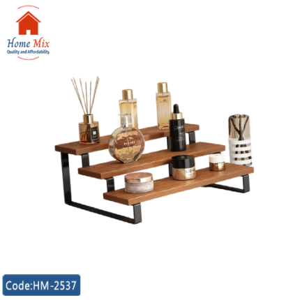 سلم توابل خشبي بقاعدة معدنية متينة، 3 أرفف عملية لتنظيم التوابل أو الاستخدام كقطعة ديكور.