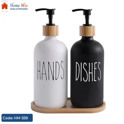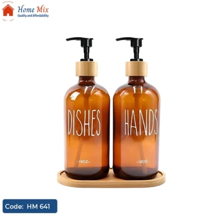 طقم ديسبنسر زجاج بتصميم فاخر من الزجاج والخشب 🌿يضيف لمسة أناقة لحوض المطبخ أو الحمام ويأتي مع حامل خشبي راقي!