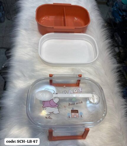 لانش بوكس آمن للأطفال مقسم دورين بغطاء محكم وملعقة داخلية.