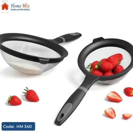 صفاية متينة من الاستانلس ستيل المقاوم للصدأ مزودة بمقبض مريح لسهولة الاستخدام، مثالية لتصفية الأطعمة والمشروبات.