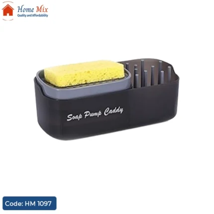 منظم عملي يجمع بين رشاقة، صفاية معالق، حامل ليفة وديسبنسر صابون في قطعة واحدة أنيقة من الاستانلس.