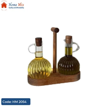 طقم زياتة عملي من زجاج بايركس عالي الجودة، مكون من قطعتين مزودة بحامل خشب بامبو أنيق، مثالي لتقديم الزيت، الخل أو الصوصات بسعة 300 مل لكل قطعة.