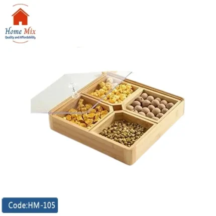 مصنوع من خشب البامبو الطبيعي المقاوم للماء، مثالي لتقديم التسالي، الكاندي، أو حتى وجبة فطار خفيفة.