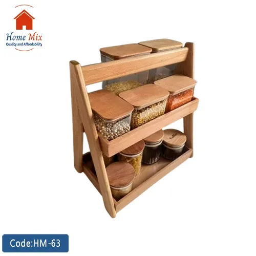 مصنوع من خشب الزان الطبيعي المتين، وبتصميم هرمي عصري بيوفر لكِ مستويين لعرض وحفظ برطمانات التوابل والبقوليات بشكل مرتب وسهل الاستخدام.
