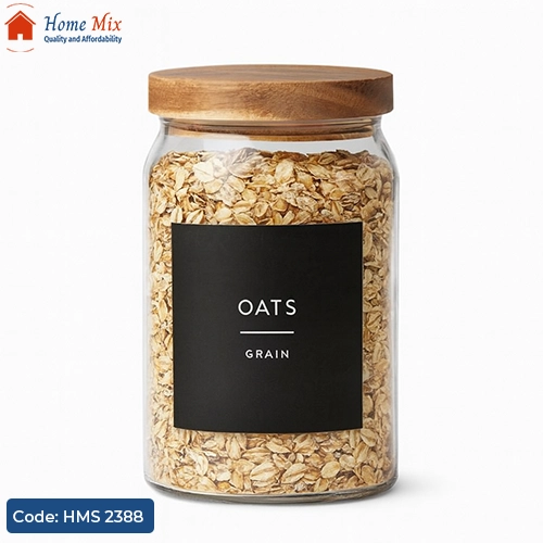 احفظي احتياجات مطبخك بأمان مع برطمان التخزين الزجاجي بايركس بسعة كبيرة 1.5 لتر وغطاء خشب محكم الغلق 🌿.