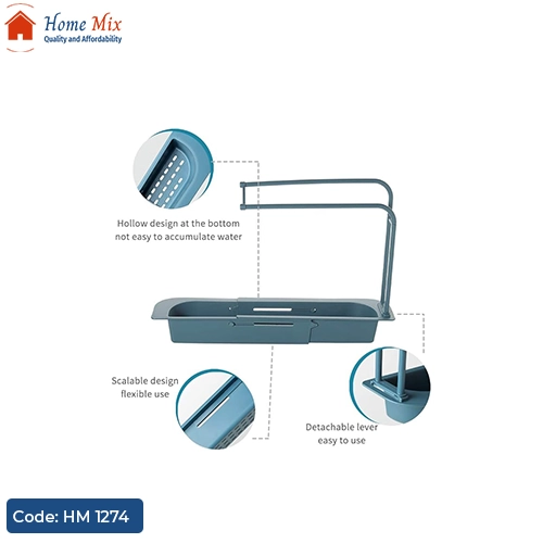 حامل عملي لليفة المواعين مع ميزة التمدد ليناسب أي حوض، مزود بحامل إضافي لتنشيف الفوط.