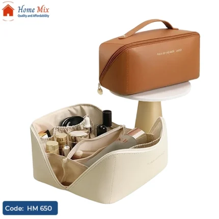 شنطة مكياج شي إن جلد – تصميم أنيق لتنظيم أدوات الميكب والعناية بالبشرة