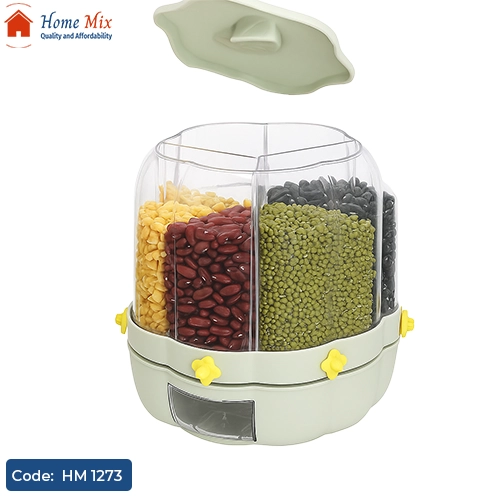 يحتوي على 6 فتحات منفصلة متحركة لتخزين أنواع مختلفة من البقوليات أو الحبوب.