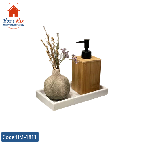 الخامة: خشب بامبو + مضخة بلاستيك أسود.
