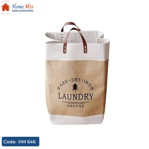 شنطة غسيل أنيقة بخامة كتان قوية وبيد جلد فاخرة 🧺