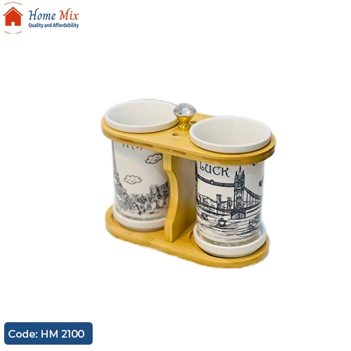 صفاية أنيقة من البورسلين مزودة بمقبض كريستال واستند خشب بامبو لتصفية الشوك والملاعق والسكاكين بسهولة وأمان في مطبخك.