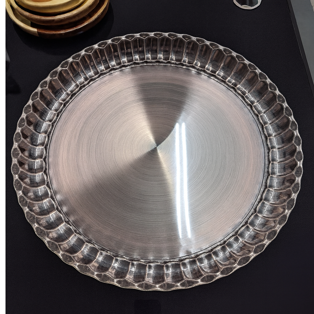 أضيفي لمسة من الأناقة والرقي إلى سفرتك مع صينية العزومات المتوسطة المصنوعة من خامة معدنية قوية ومقاومة للصدأ.