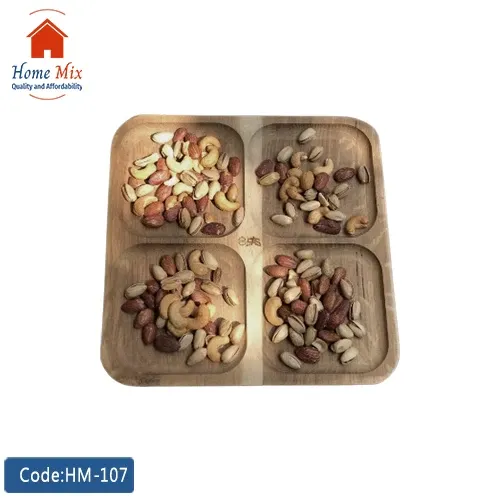 يتميز بتصميم عملي وأنيق يحتوي على 4 خانات حفر متساوية، مما يجعله مثالياً لتقديم المكسرات، التسالي، أو الحلويات بشكل مرتب وجذاب.