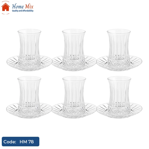 مصنوع من زجاج تركي عالي الجودة يتميز باللمعان والمتانة، ومناسب للاستخدام اليومي أو للضيافة الراقية.
