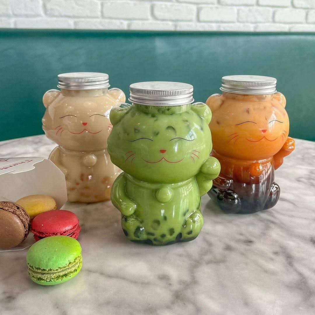 طقم عصائر مكوّن من ٣ مجات بتصميم كيوت وغطاء معدني محكم الغلق مع حامل خشبي أنيق لتقديم العصائر والمشروبات بشكل شيك ومبهج 🍹✨