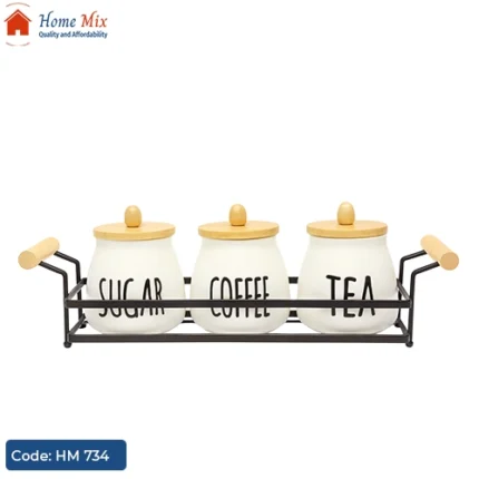طقم توابل بورسلين – 3 قطع مع استاند خشب