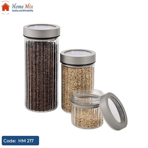 يتميز الطقم بتصميمه الزجاجي الشفاف المزخرف الذي يسهل رؤية المحتويات ويمنح مطبخك لمسة فاخرة ومنظمة. مثالي لتخزين البقوليات، الأعشاب، المكسرات، أو حتى الاستخدام داخل الثلاجة.