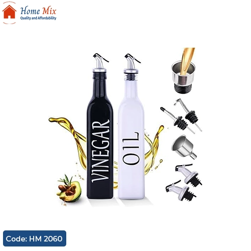 طقم عملي من الزجاج الفاخر لتقديم الزيت والخل، سعة كل زجاجة 500 مل، تصميم أنيق يضيف لمسة جمالية لمطبخك أو سفرتك.