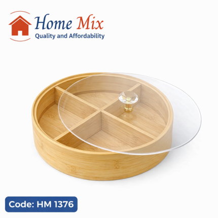 طبق تسالي خشب بامبو بغطاء أكريليك – مزود بمقبض كريستال