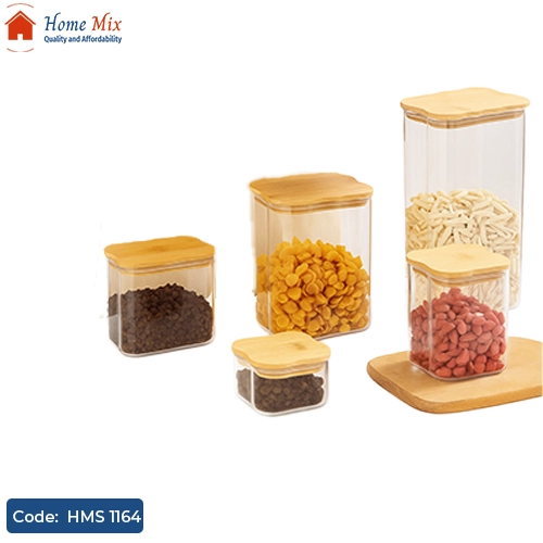 علبة بقوليات زجاج بايركس بغطاء خشب + معلقة – 650 مل