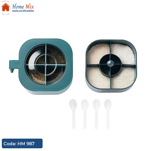 علبة توابل عملية وأنيقة، مقسمة من الداخل إلى 4 خانات منفصلة مع 4 معالق بلاستيك لسهولة الاستخدام والتنظيم.