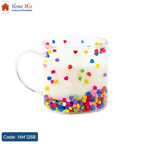 كوب بايركس حراري بتصميم فريد من نوعه يحتوي على قلوب ملوّنة داخل طبقتين من الزجاج، يمنحك شكل مبهج ويجعل كل رشفة ممتعة.