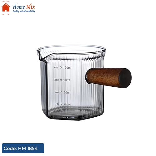 معيار زجاج بايركس عملي، يستخدم كمعيار أو صوصيرة أو كنكة قهوة صغيرة بيد خشب عازلة للحرارة.