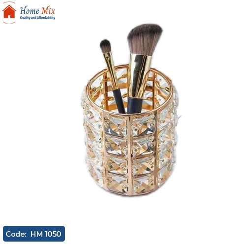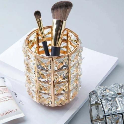 مقلمة كريستال جولد أنيقة لتخزين فرش الميك أب أو الأقلام،
