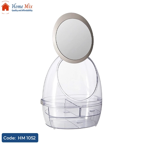 أضيفي لمسة فخامة وتنظيم لتسريحتك مع منظم الميك أب الأكريليك الكريستالي المزود بمرايا دوّارة.