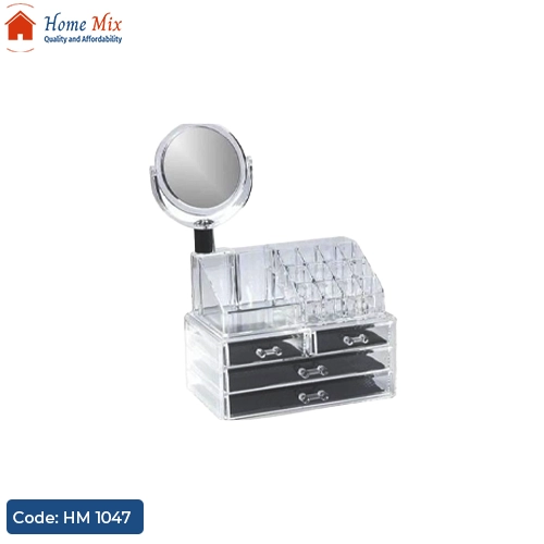 منظم ميك أب أكريليك 4 درج مزود بمرايا – تصميم عملي وأنيق (24×14×40 سم)