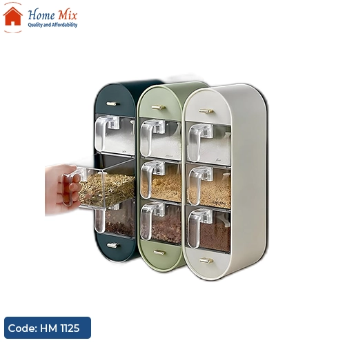 رتبي مطبخك بلمسة عملية وأنيقة مع طقم التوابل الأكريلك، 3 علب + درجين + معالق، وكمان سهل التعليق على الحيطة بالهوك المرفق.
