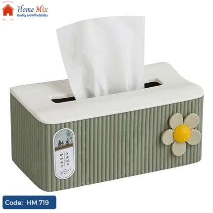 علبة مناديل أنيقة بتصميم مضلع ووردة ديكورية 🌸خامة بلاستيك مقوّى تضيف لمسة جمالية للمكتب أو المنزل ✨