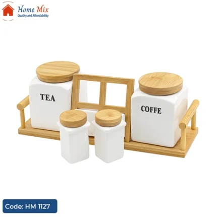 رتّبي احتياجات الكوفي كورنر بأناقة مع طقم البرطمانات البورسلين 3 قطع بغطاء خشب محكم.