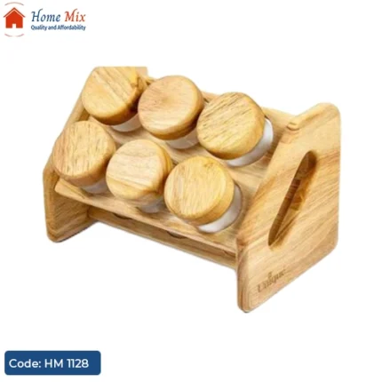 رتبي بهاراتك بكل أناقة مع طقم التوابل الزجاجي 6 قطع بغطاء خشب محكم.