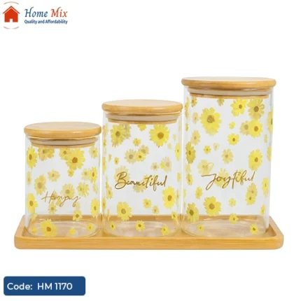 خلي صباحك مليان بهجة مع طقم البرطمانات الزجاج Good Morning بتصميم الورود وغطاء خشب محكم الغلق.